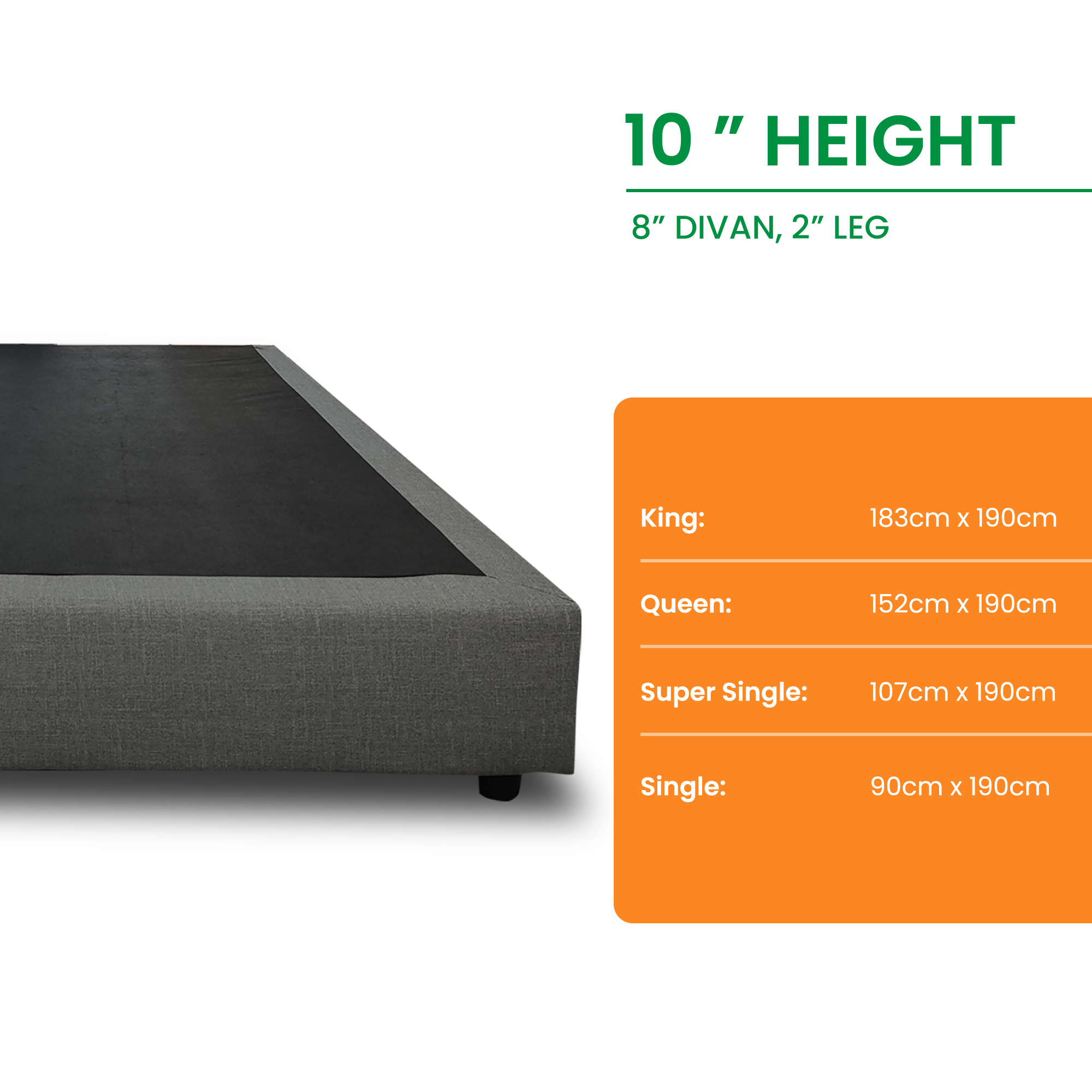 ALPHA Divan,织物状PVC,易于清洁的坚固底座,可选尺寸(特大号、大号、超级单人、单人)